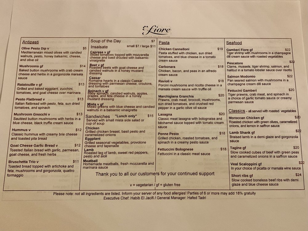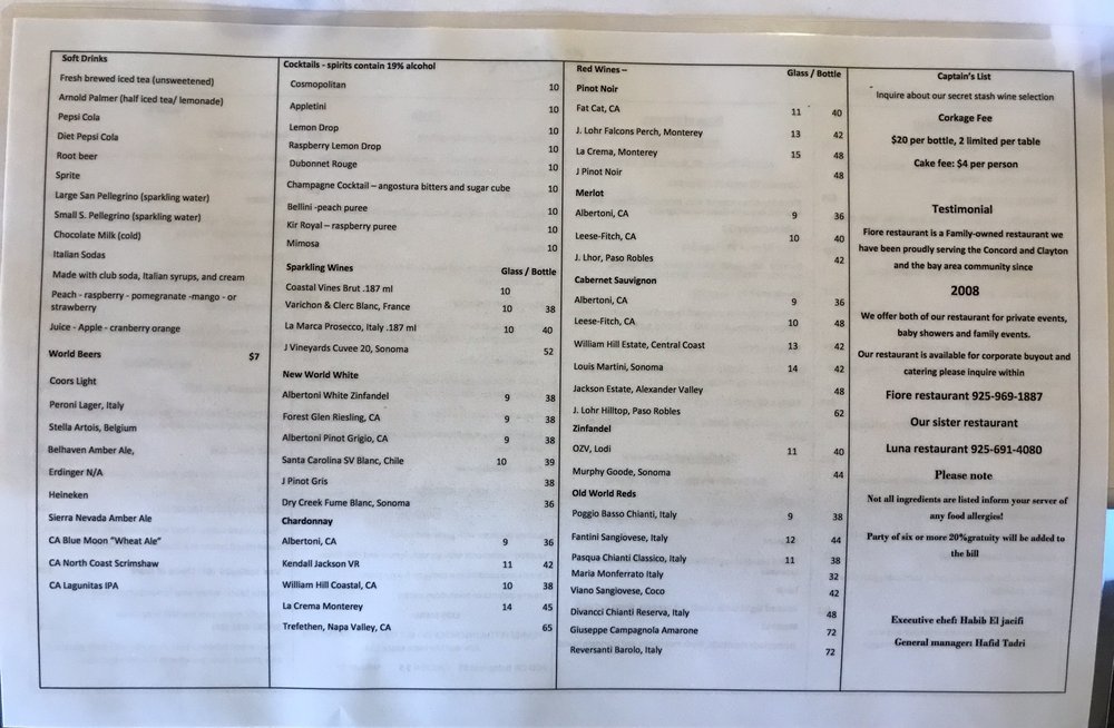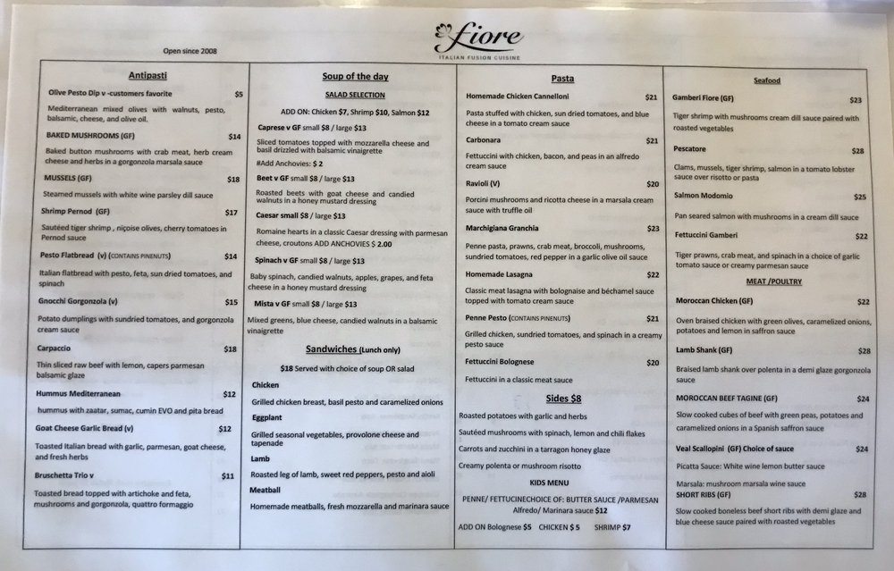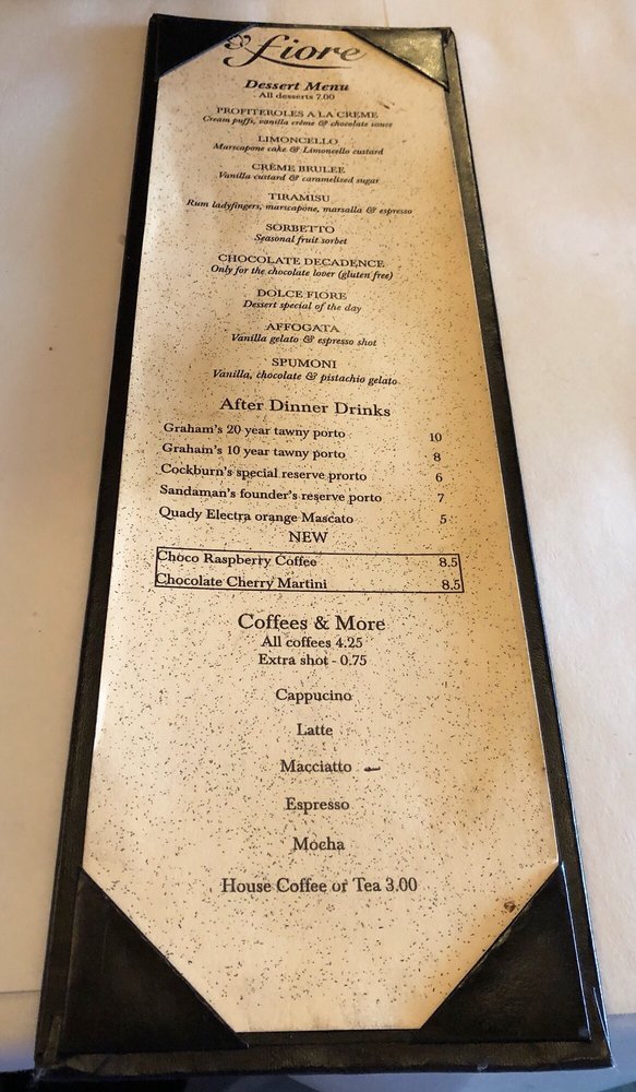 Introducing Fiore Restaurant, a charming establishment in Concord, CA that offers a variety of dining experiences. With options for vegan and vegetarian diners, along with wheelchair accessibility and gender-neutral restrooms, Fiore Restaurant caters to a diverse clientele. The menu features delectable dishes like Steamed Clams, Italian Mezze, and Gamberi Fiore, all prepared with care and attention to detail. Customers have praised the impeccable service, unique flavors, and cozy ambiance, making Fiore Restaurant a standout in the local dining scene. Don't miss the opportunity to enjoy a memorable meal at Fiore Restaurant, where every visit feels special and every dish is a delight.
